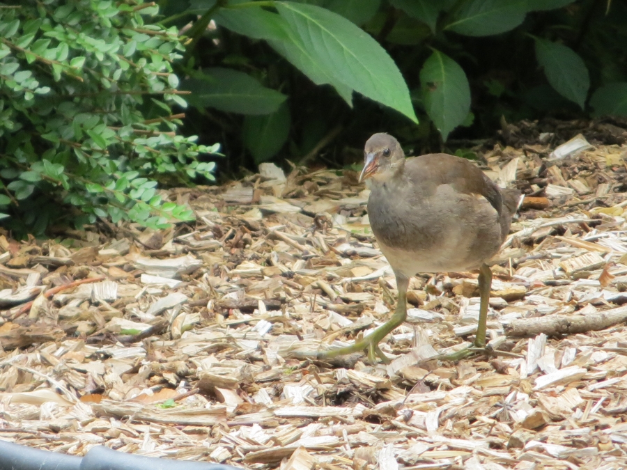 Een van de kuikens van ons koppeltje waterhoentjes