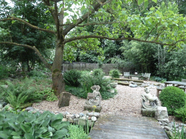 Zicht op onze tuin. Onze Paulownia tomentosa- de keizersboom, is hier nog zonder blad.